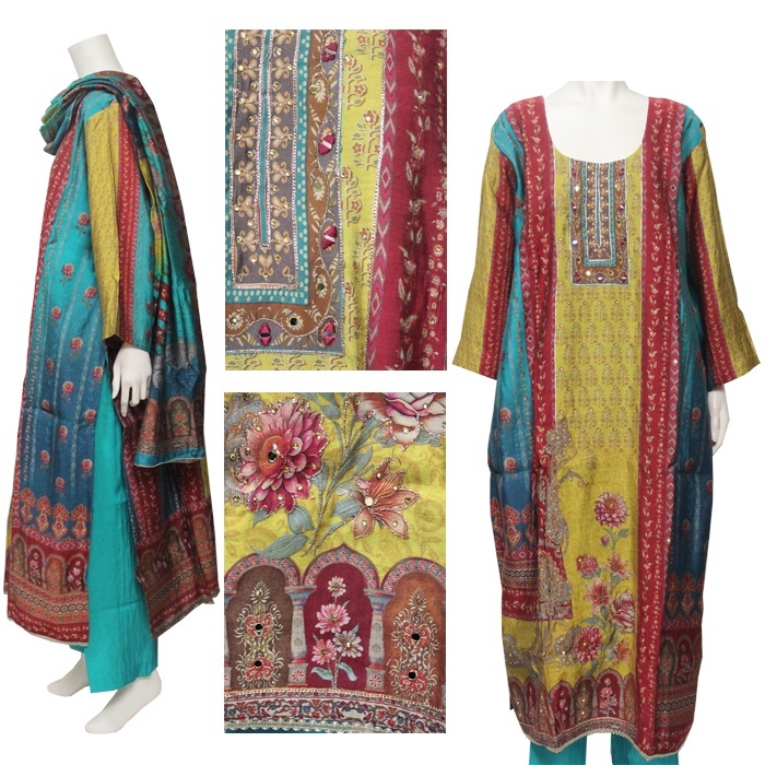 素材:綿混(クルタ)、コットン(ドゥパッタ)、化繊他(クルタ裏地、ズボン、ドゥパッタ縁取り)