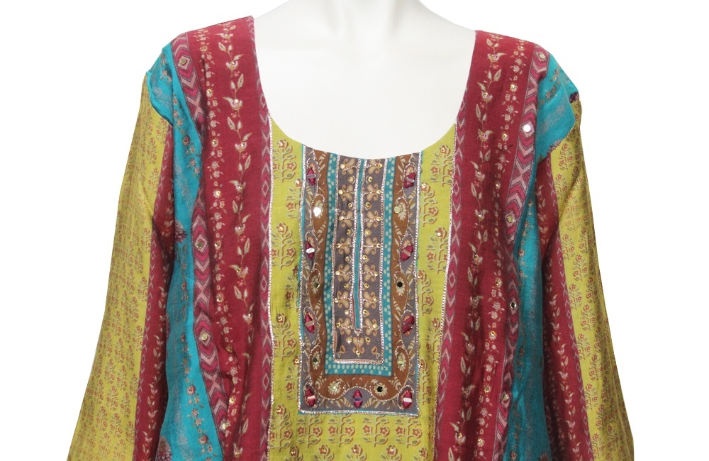 クルタはロング丈でビーズや刺繍などでデコレーションされていて上品な印象です。