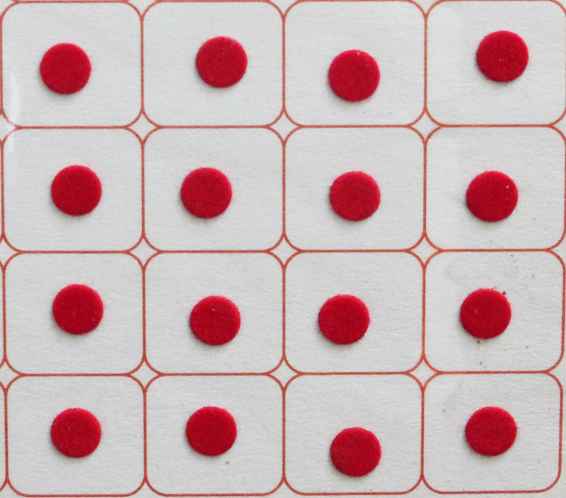 トラディショナルなレッドの丸いビンディ約0.5cmです。