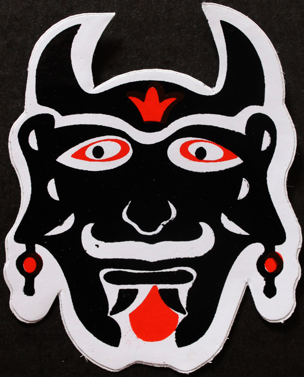 角や赤い目、舌を突き出しているデザインは力や保護、邪悪からの守りの象徴で