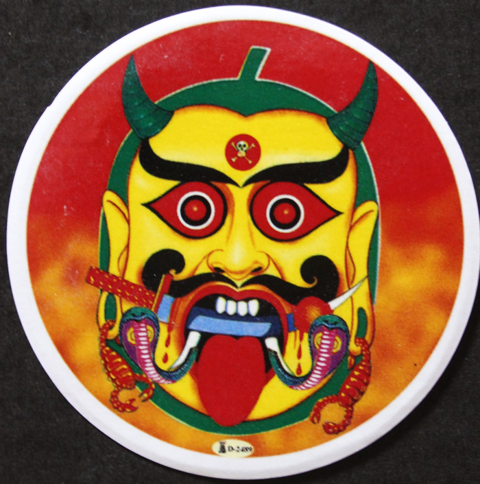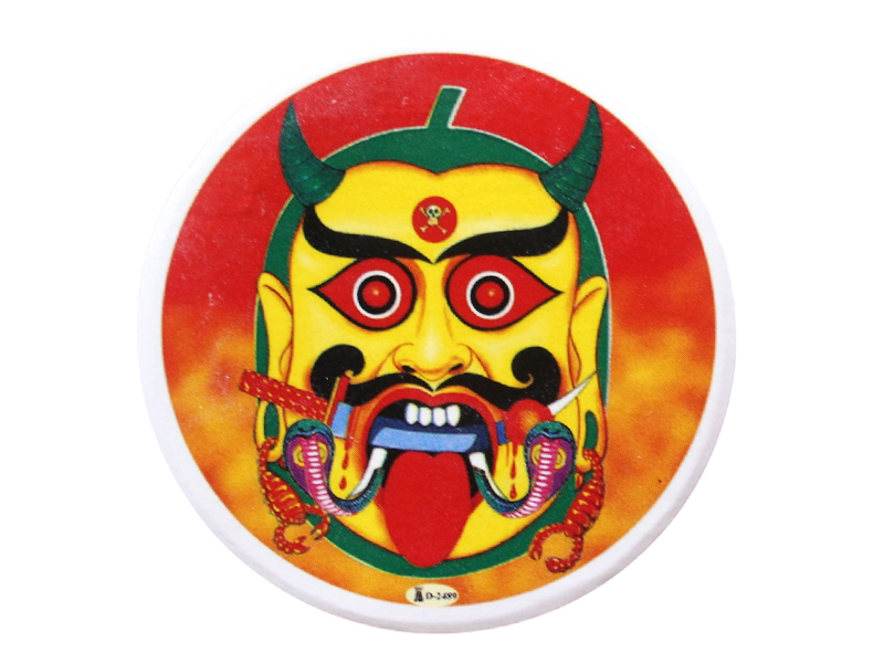 角や赤い目、舌を突き出しているデザインは力や保護、邪悪からの守りの象徴で