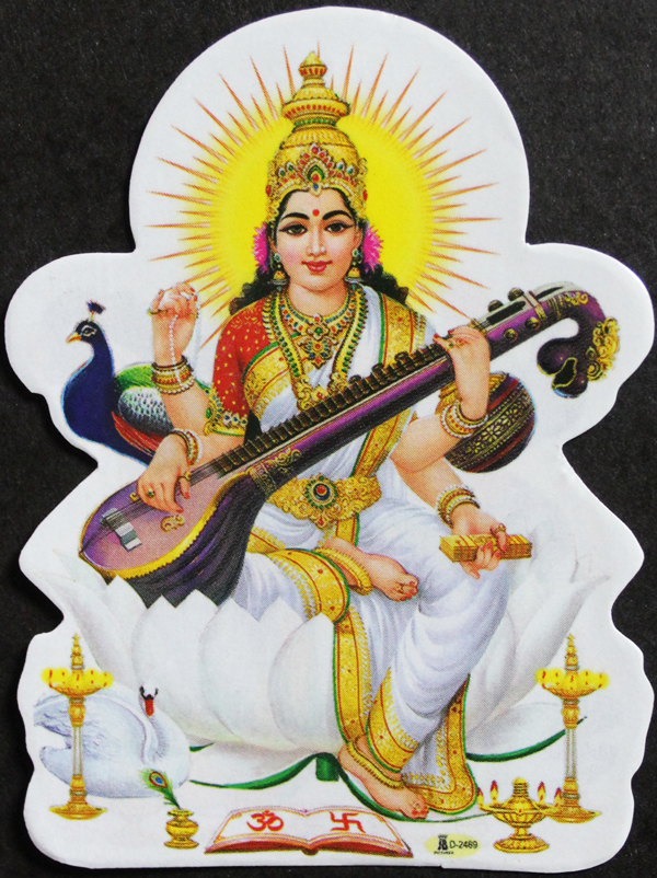 学問と芸術の女神サラスバティのステッカーです。
