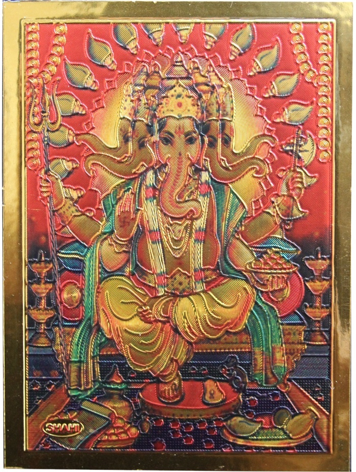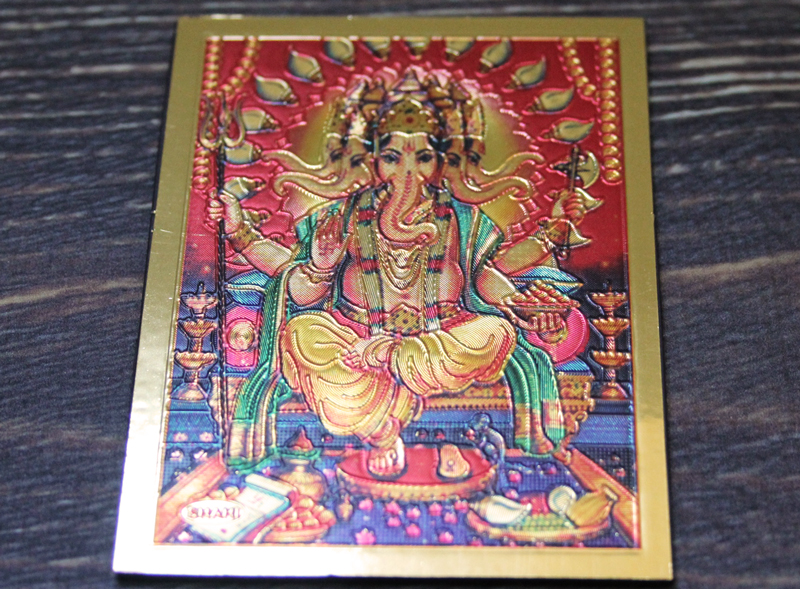 ガネーシャは象の頭を持つ神様で富、知恵、商売の神でもあります。