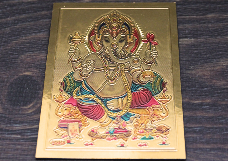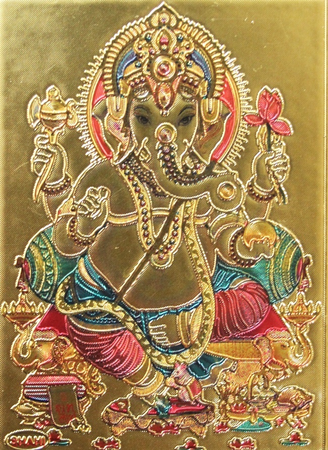 ガネーシャは象の頭を持つ神様で富、知恵、商売の神でもあります。