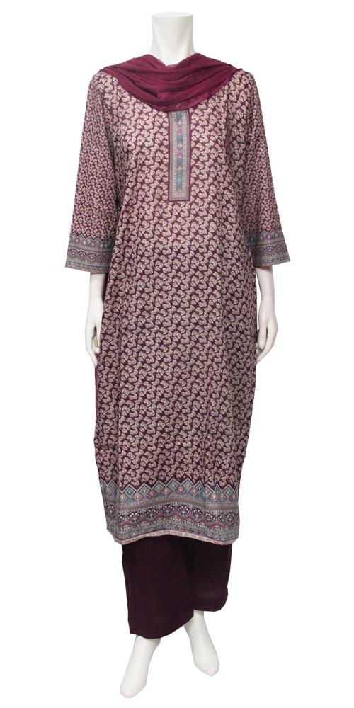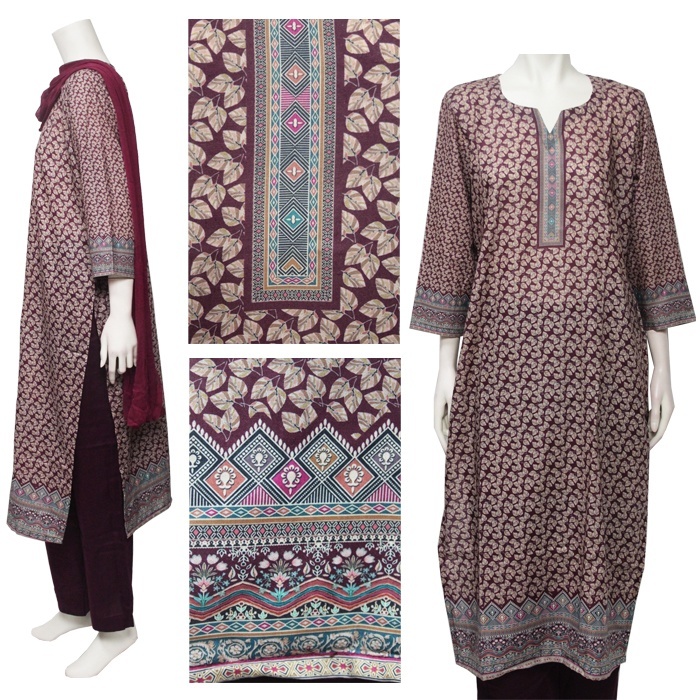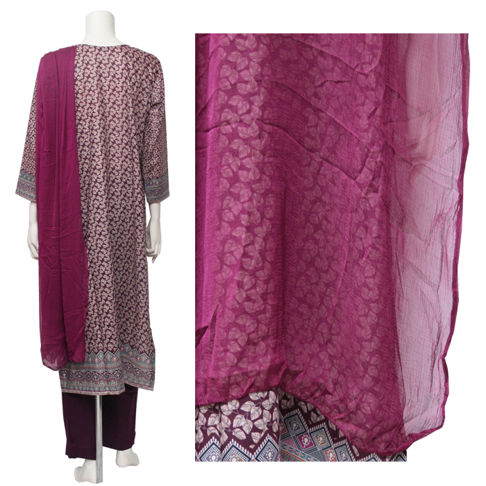 <L>パンジャビドレス:クルタ・ズボン レッドパープル系 [PJ672]