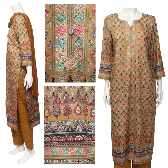 <M>パンジャビドレス:クルタ・ズボン 黄土色 [PJ673-1]