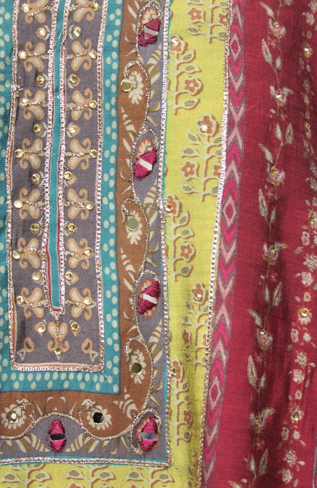 素材:綿混(クルタ)、コットン(ドゥパッタ)、化繊他(クルタ裏地、ズボン、ドゥパッタ縁取り)