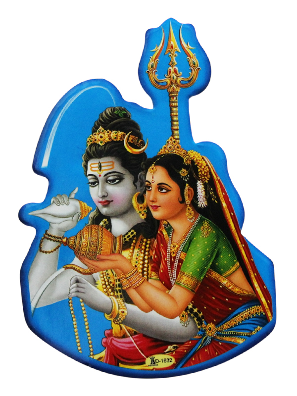 三大神の一人で破壊を司る神シヴァとその妻パールバティのステッカーです。
