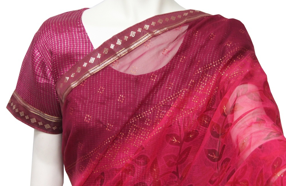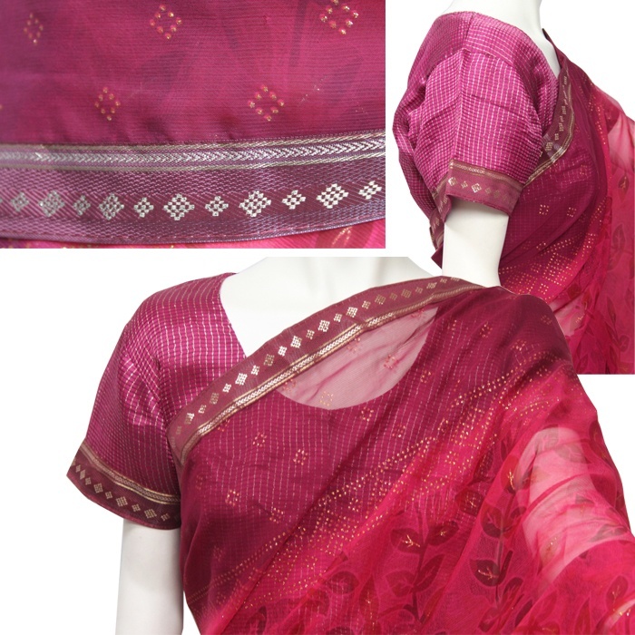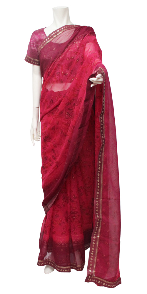 SALE!! サリー:ピンク~レッドパープル リーフ [sari302-2]