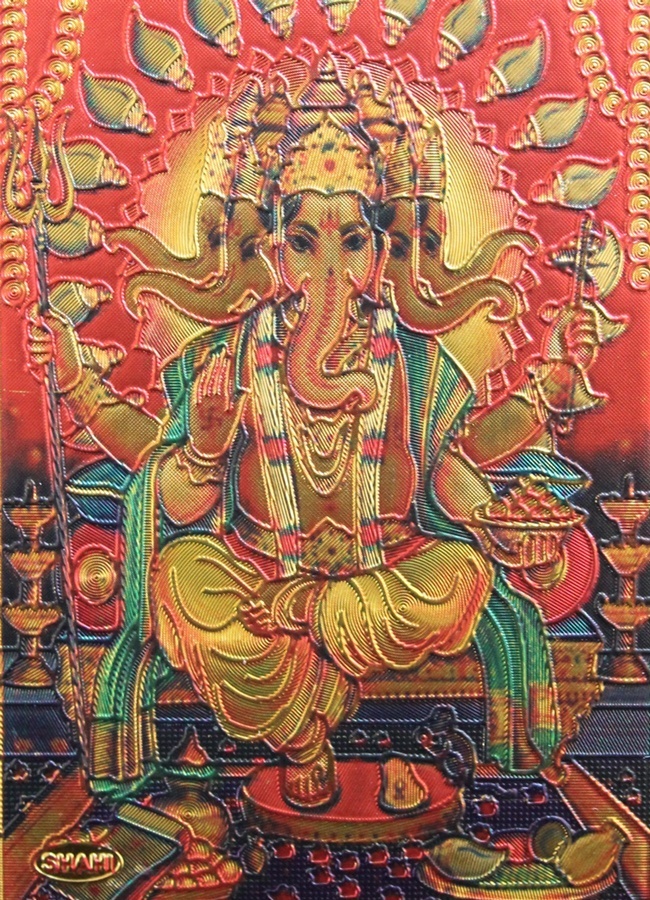 ガネーシャは象の頭を持つ神様で富、知恵、商売の神でもあります。